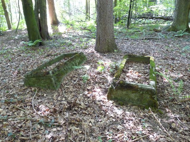 Das linke Bild zeigt die Vorderansicht des Gutshauses Pergusen. Das rechte Bild zeigt den Hügel, auf dem das Gutshaus Weinings stand. 2009 ließ nur noch eine Baumgruppe den Standort erahnen. Das rechte Bild zeigt Gräber auf dem alten Gutsfriedhof im Trautenwald. An manchen Grabumrandungen waren 2009 noch Inschriften lesbar (unter anderem die FN SCHINDOWSKI, WEINERT, WEILS, GILLWALD, MARX).